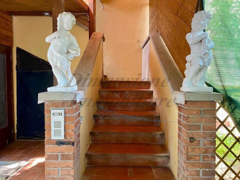 L’accesso alla proprietà avviene tramite cancello carrabile che si apre su un incantevole giardino con pineta, ambiente perfetto per rilassarsi all’aria aperta con la famiglia ed amici.