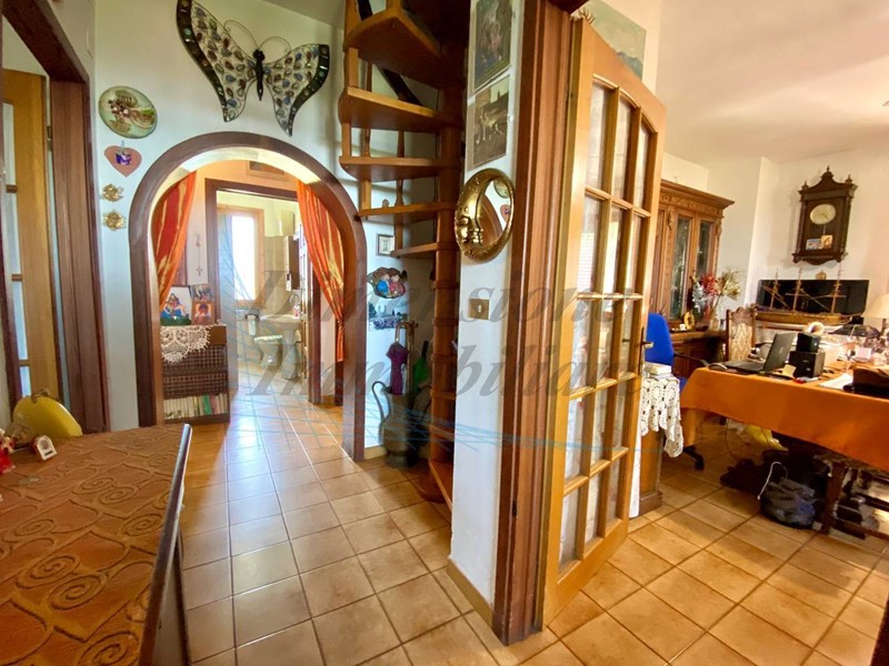 Composto da ampia terrazza panoramica, che offre una vista spettacolare sul mare, sulle isole e sul verde della campagna, cucina abitabile con cucinotto, salotto con accesso diretto alla terrazza, (possibilità di creare un bellissimo open space), disimpegno che separa la zona giorno dalla zona notte, 3 grandi camere matrimoniali e due bagni.