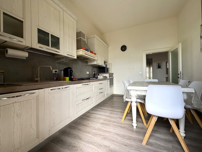 L'immobile è composto da un ampio soggiorno con accesso al balcone, cucina abitabile che si affaccia sul meraviglioso terrazzo abitabile ideale per cene all'aperto e per momenti di convivialità dotato di tenda da sole motorizzata, disimpegno, due ampie e luminose camere matrimoniali, servizio finestrato con doccia e vasca oltre lavanderia/ripostiglio.