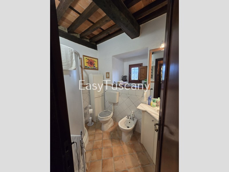 Inoltre, è possibile parcheggiare comodamente più auto all'interno della proprietà. L'atmosfera che si respira in questa casa è quella tipica dei rustici toscani, con travi a vista, pavimenti in cotto e finiture in pietra.