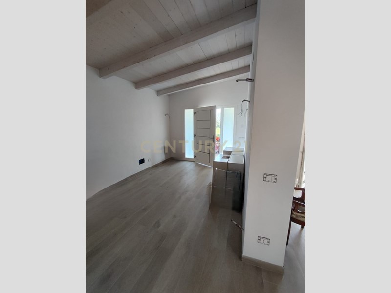 Gli interni sono ben organizzati e confortevoli: si accede direttamente nella zona giorno con angolo cottura, perfetta per condividere momenti conviviali. Un disimpegno conduce a una camerina (ideale come studio, stanza per gli ospiti o spazio polifunzionale) e a un bagno con box doccia. Infine, una camera matrimoniale più spaziosa completa la zona notte, impreziosita da un bagno privato interno.