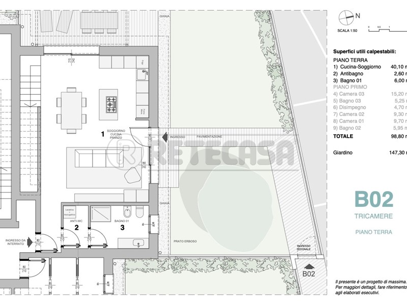 immagina una casa, che risponde ai tuo desideri, che si adatta al tuo ritmo di via, che ti offre sicurezza e confort con un semplice tocco o un comando vocale. Vimar by me lo T, ti permette attraverso l'impiego della domotica tutto questo. Aggiungi che questa abitazione ha una grande e luminosa zona giorno, tre camere e ben tre bagni con la lavanderia separata. Giardino di 150 mq su tre lati e al piano interrato un garage di ben 52 mq. Il confort è garantito dall'impianto di riscaldamento a pavimento alimentato dalla pompa di calore corredata dai pannelli fotovoltaici, serramenti in pvc di alta qualità triplo vetro, zanzariere integrate ed infine per gantirti un confort assoluto 365 giorni l'anno la ventilazione meccanica puntuale di serie. Capitolato completo e di altissima qualità ampiamente personalizzabile completano questa splendida nuova realtà proiettata verso il futuro.