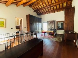 Il corpo di fabbrica principale è costituito da una ex casa colonica tipica marchigiana, completamente ristrutturata nel 2004 con dettagli e finiture di pregio. L'edificio è sviluppato su due livelli con due ingressi autonomi dal piano terra e dal piano primo. Il piano terra è di circa 185 mq, dall'ingresso ci si affaccia su un grande soggiorno, un salotto, una sala da pranzo, cucina con uscita nella veranda esterna dotata di forno a legna, un bagno, un ripostiglio. Il piano superiore, di 167 mq, dotato di scala interna è caratterizzato da un'ampia zona di rappresentanza, un salottino con camino, quattro camere di cui due con bagno interno, terzo bagno. A completamento della proprietà troviamo altri due fabbricati, una dependance di circa 77 mq composta da soggiorno con camino, cucina, bagno, camera e cabina armadio con riscaldamento alimentato da una propria caldaia. Al piano seminterrato raggiungibile con scala dal giardino troviamo un garage e lavanderia di circa 100 mq, nel solaio di calpestio al piano del parco insiste un grande pergolato di circa 70 mq con struttura in legno a vista aperto su tutti i lati. Nella parte del seminterrato è presente tutta l'attrezzatura per la produzione del vino oltre ad un trattore accessoriato. All'interno dell'area è presente un lotto edificabile che prevede la realizzazione di una superficie utile fuori terra di mq 200, oltre un ulteriore interrato, il cui progetto ' stato approvato dal comu