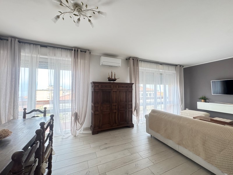 L'APPARTAMENTO posto al piano terzo di palazzo con ascensore si presenta con ingresso, ampia sala vista mare con terrazza vivibile, cucina abitabile, disimpegno, due camere(matrimoniale e doppia) e serviziodoccia.