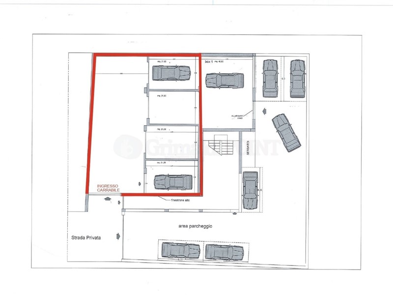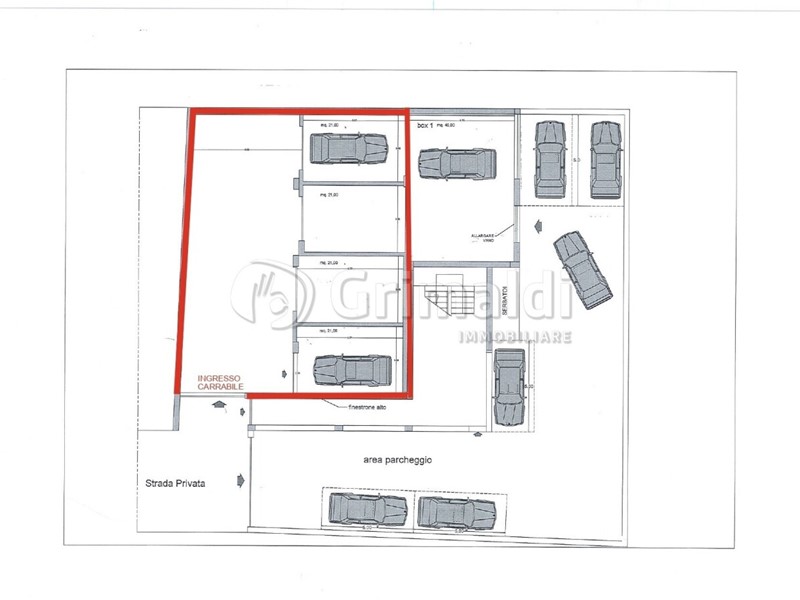 Grazie alla disposizione regolare degli spazi e all’ampia metratura, la struttura si presta alla realizzazione di 4 o 5 box auto, oppure di adibirlo ad altri usi compatibili: deposito o magazzino.