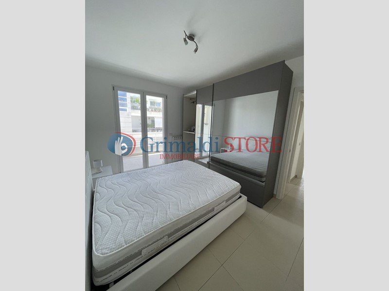 Un disimpegno separa la zona giorno dalla zona notte, che include una camera da letto matrimoniale con accesso diretto al terrazzo. Il bagno patronale è comodo e ben posizionato.