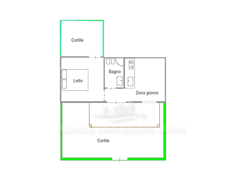 L'interno dell'immobile è funzionale, con un soggiorno accogliente e un cucinotto a vista, perfetto per trascorrere piacevoli serate. Il bagno, dotato di aerazione elettrica, e la camera da letto, con accesso diretto a un cortiletto privato, completano gli spazi abitabili.