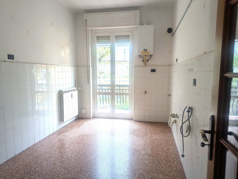 Pontedecimo, Salita Serra Riccò, in bella palazzina con ascensore, proponiamo un appartamento di 6 vani così suddiviso: dalla porta caposcala blindata accediamo all'ingresso/corridoio. Subito sulla sinistra troviamo la sala ampia e con uscita sulla balconata. Subito dopo, sullo stesso lato, troviamo la cucina abitabile e anch'essa con uscita sulla balconata. E' facile intuire che, con poche mosse, si potrebbe ottenere una grande zona giorno con angolo cucina abbattendo la parete che divide queste due stanze e magari incorporare ance l'ingresso ad oggi poco sfruttato. Le camere sono due: una matrimoniale molto grande e una singola di buona metratura. Il bagno, recentemente ristrutturato, ha la doccia e la finestra. Nel corridoio troviamo, inoltre, un comodo ripostiglio. Internamente l'immobile si presenta in buono stato con molti lavori importanti eseguiti recentemente, come le finestre taglio termico con doppio vetro, il bagno, l'impianto elettrico sfilabile e la porta blindata. Le porte interne, in noce, sono di ottima fattura e si presentano in ottimo stato. Il riscaldamento è centralizzato e ogni calorifero è dotato di termovalvole e contacalorie. La produzione di acqua calda è autonoma tramite uno scaldabagno a gas posizionato in cucina. L'immobile è un quarto ed ultimo piano con ascensore. L'esposizione è totalmente esterna e nel verde e risulta molto luminoso e silenzioso. Il palazzo dispone di una piccola area condominiale di parcheggio. Richiesta Euro 62.000 -- NELLO STESSO STABILE DISPONIAMO DI UN ALTRO IMMOBILE DI 6 VANI