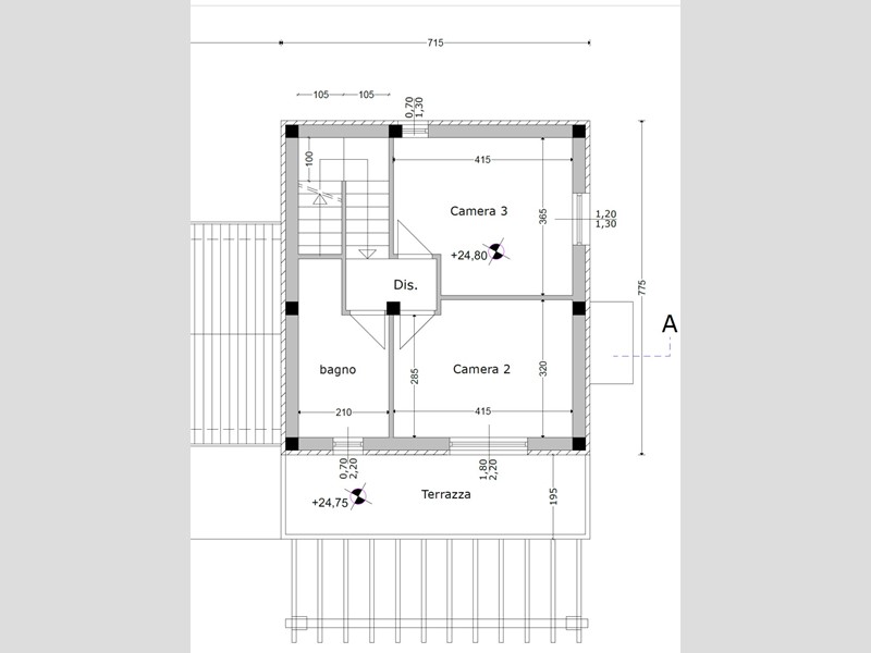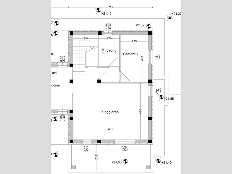 - piano terra: ingresso in ampio soggiorno, cucina, camera e bagno;