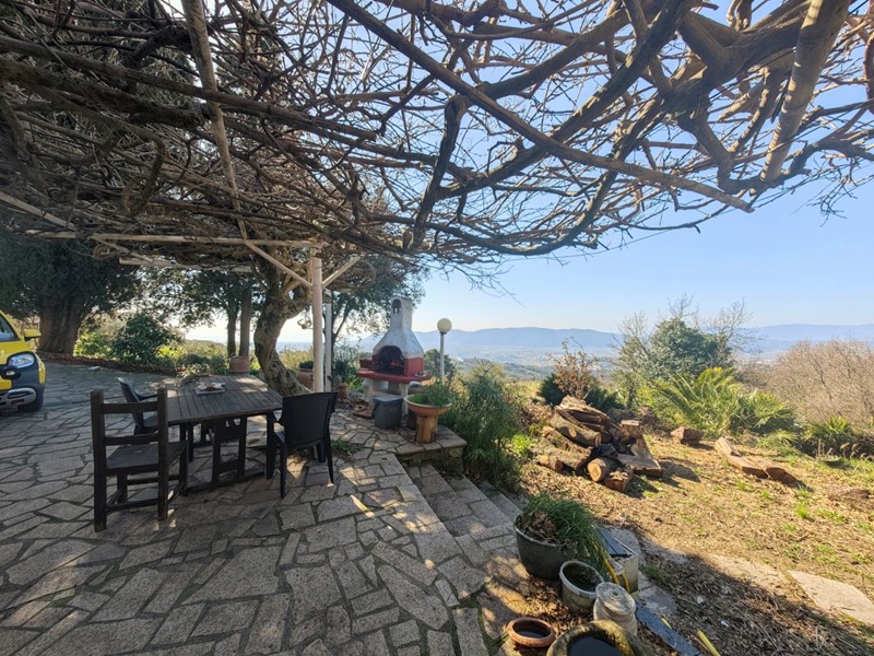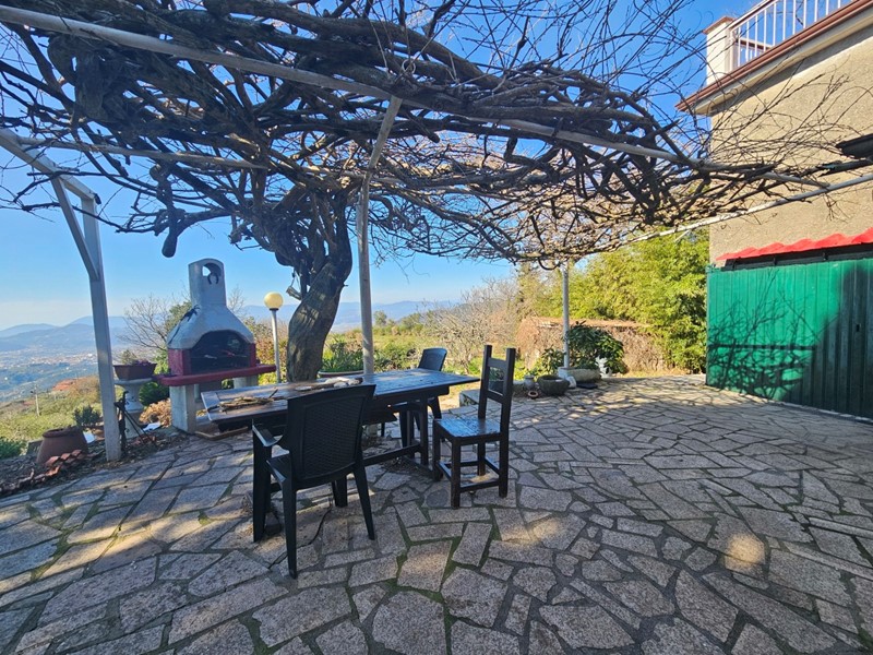 Nella collina tra Sarzana e Fosdinovo, con bellissima vista panoramica, proponiamo terratetto semindipendente con ampio terreno, l'immobile si distribuisce su tre piani ed così composto: ingresso al piano terra in cucina abitabile, soggiorno con camino ed ampia cantina adiacente, salendo tramite scala interna al piano primo troviamo un altra zona giorno con ampia sala, un disimpegno/locale armadi, una camera matrimoniale e il bagno finestrato con vasca; infine al secondo ed ultimo piano troviamo un altra camera matrimoniale con affaccio due terrazzi con meravigliosa vista panoramica. La proprietà si completa di un garage e di un terreno di circa 7.500 mq in parte piantumato a frutto e oliveto ed in parte boschivo. Ottima soluzione ad uso villeggiatura, per chi cerca la tranquillità ma a pochi kilometri dal mare e dalle principali attrazioni.