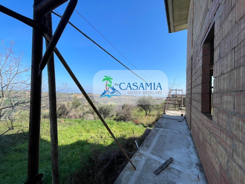 A solo 900 metri dal piccolo borgo marghigiano in zona prettamente panoramica con bellissima vista mare e colline, palazzina indipendente attualmente allo stato grezzo della superficie complessiva di circa 700 mq. Trattasi di un fabbricato insistente su un'area di circa 1000 mq ed è stato costruito ex novo dalle fondamenta, si sviluppa su 3 livelli: piano interrato destinato a garage e cantine; piano terra e piano primo a destinazione abitativa e piano sottotetto con ampia terrazza panoramica. Possibilità di realizzare una bifamiliare, una grande villa oppure una struttura ricettiva. La proprietà ha un'ottima posizione che permette di raggiungere facilmente i diversi borghi presenti nell'entroterra marghigiano e le cittadine lungo la costa adriatica. Vi è la possibilità di acquistare un terreno adiacente edificabile di circa 700 mq ad un prezzo da computare a parte.