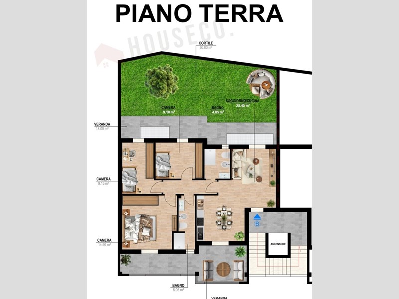 Uno dei principali punti di forza della proprietà è la presenza di ampi spazi esterni: un cortile privato di 50 mq, perfetto per momenti di relax all’aperto, e due verande coperte rispettivamente di 18,00 mq e 17,30 mq, ideali per pranzi all’aperto o per essere arredate come zone living esterne.