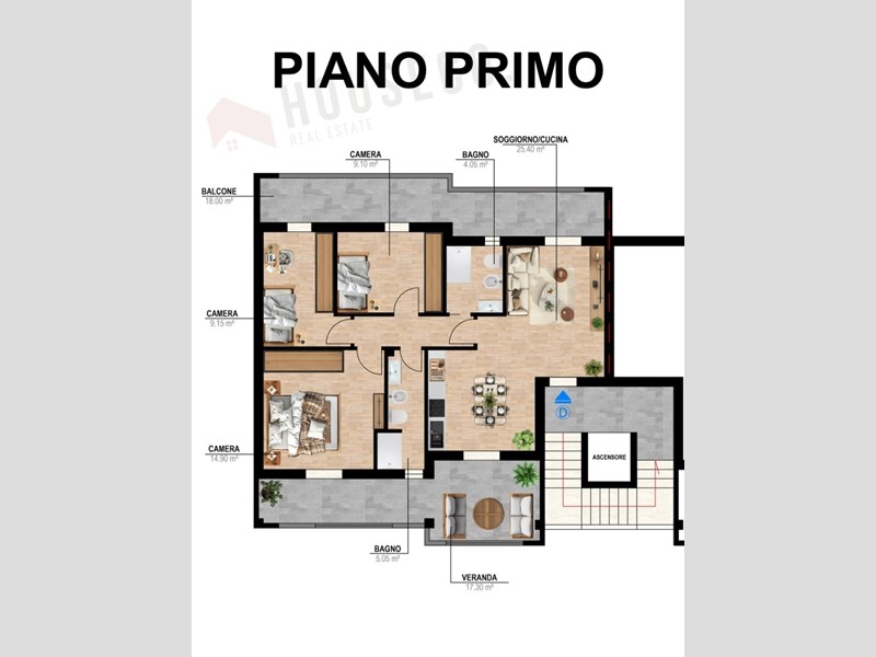 Questo immobile è ideale per chi cerca comfort, funzionalità e ampi spazi esterni, infatti è così composto: ampia zona giorno open-space con angolo cottura riservato, luminosa e ben distribuita, perfetta per accogliere amici e familiari. La zona notte è composta da tre camere da letto: una spaziosa matrimoniale e due camere singole, adatte per bambini, ospiti o per creare uno studio personale. Completano l'appartamento due bagni finestrati, ben rifiniti e comodamente posizionati per servire le diverse aree dell’appartamento.