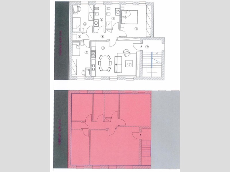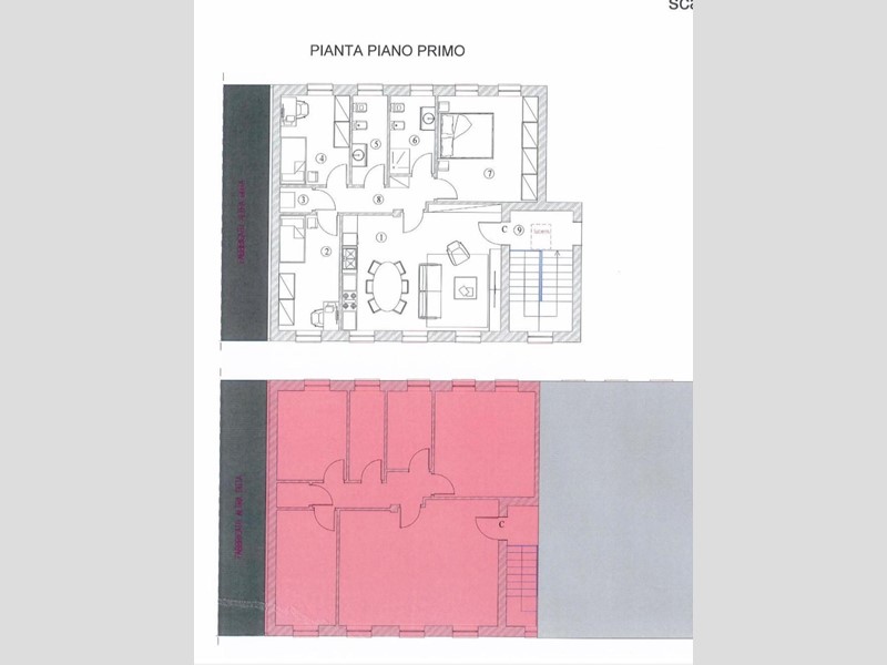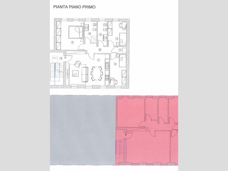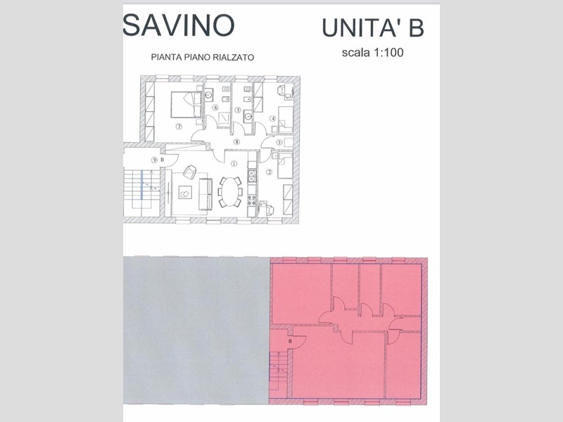 APPARTAMENTO è composto da : Soggiorno con parete attrezzata a cucina, il disimpegno divide la zona notte e in: tre camere, due bagni e ripostiglio al piano seminterrato il garage per due auto