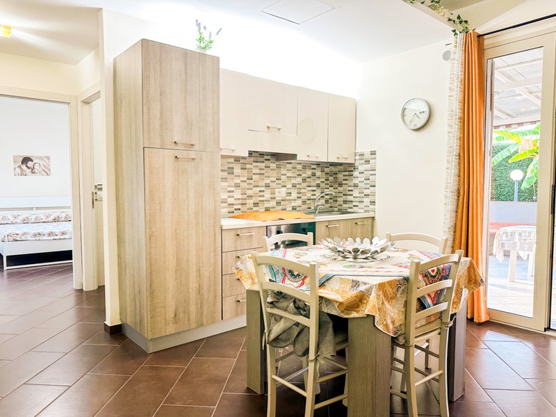 La seconda villetta, altrettanto accogliente, offre la stessa disposizione interna: ingresso su cucina-soggiorno, camera matrimoniale e bagno con doccia. Il punto di forza di questa unità è il suo ingresso indipendente direttamente dalla strada, che la rende estremamente comoda e funzionale. A completare, un ampio terrazzo a livello e un'area verde che circonda l’abitazione.