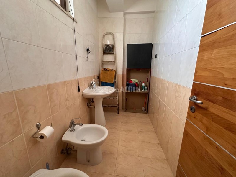 Il bagno, dotato di tutti i servizi essenziali, è situato sul retro del negozio.