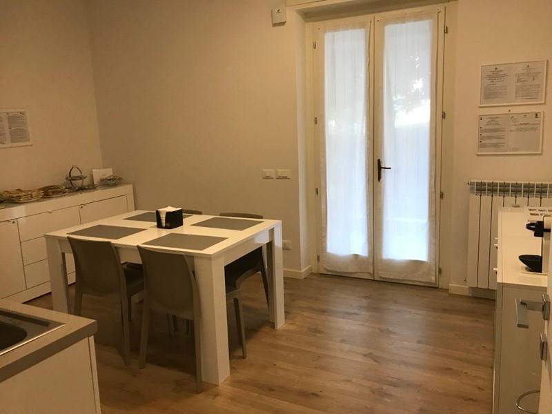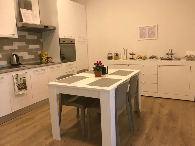 Attualmente adibito a B&B, la soluzione si compone di: zona giorno con angolo cottura ed affaccio sul grazioso portico e sul giardino privato, un disimpegno conduce a tre ampie camere da letto matrimoniali (ognuna con il suo bagno) oltre ad un locale ripostiglio.