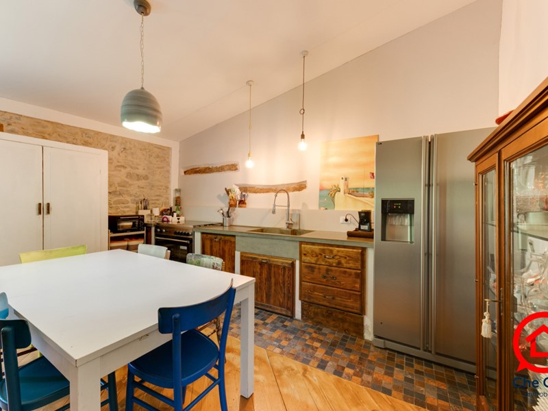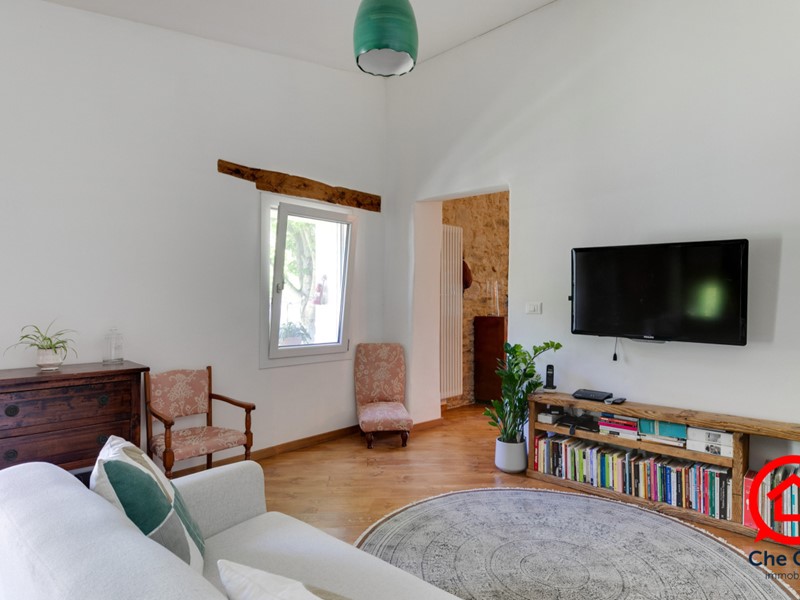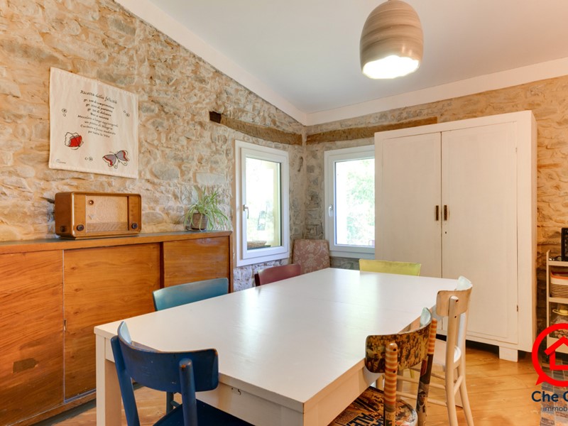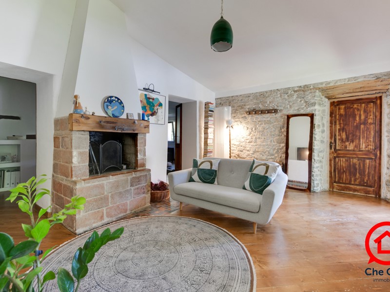 Roversano di Cesena: Immersa nelle bellissime colline cesenati e a due passi dal centro cittadino vendiamo bellissima casa abbinata recentemente ristrutturata con giardino pianeggiante di circa 1100mq. Al piano superiore la casa è composta da una Cucina abitabile, Soggiorno con Camino, Camera da letto matrimoniale attualmente adibita ad un secondo Soggiorno. Da una scala interna si accede al Piano Terreno dove troviamo ambienti ad uso Servizi, utilizzabili per vari usi. La ristrutturazione è stata fatta con alta qualità: isolamenti interni, totale recupero di pietre e travi storici, parquet in legno al piano superiore, infissi nuovi con zanzariere, caldaia nuova a condensazione, illuminazione esterna presente ed altro. Esternamente è presente anche un pozzo ideale per irrigare il Giardino e l’Orto.