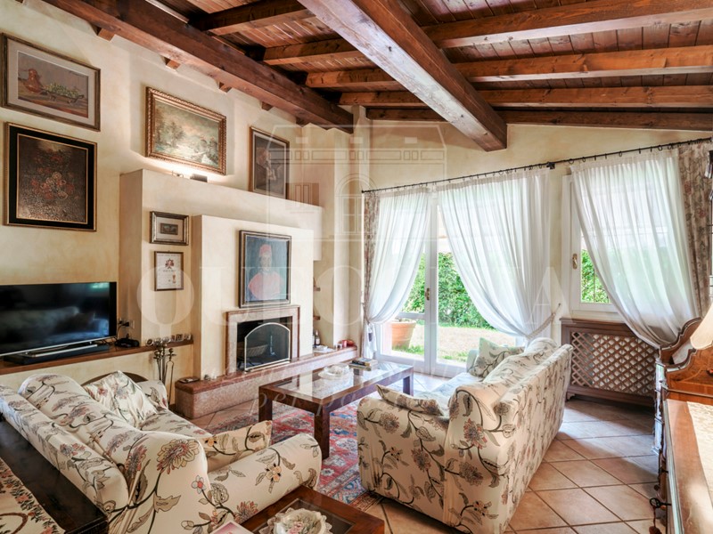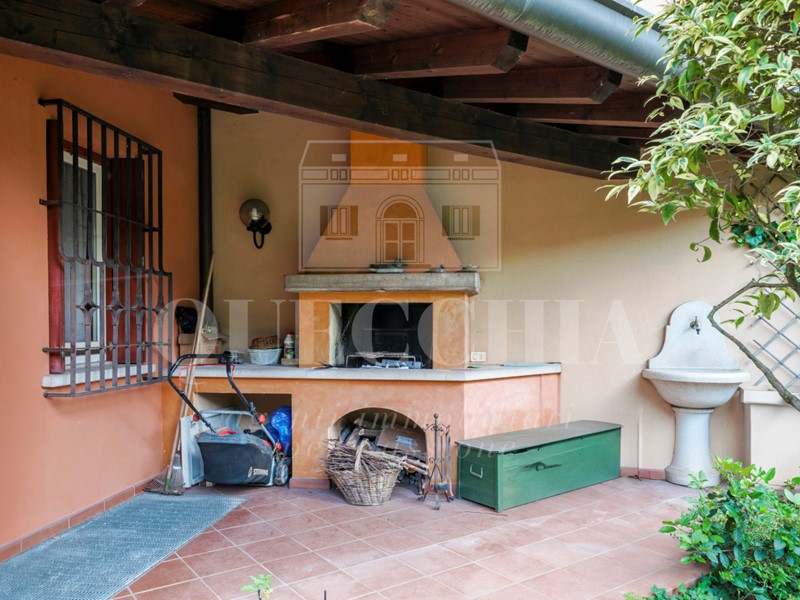 CAIONVICO, in prestigioso residence con ampie zone verdi e piscina nuova, signorile villa trifamiliare con ingresso indipentente, porticato, 300 mq di giardino privato piantumato e attrezzato di barbecue in muratura. Splendida vista sulle colline. Silenziossima. Tenuta benissimo. Composta da soggiorno con zona pranzo e camino, cucina abitabile, 3 camere da letto, studio, 3 bagni, lavanderia, taverna con cucina e camino, cantina e garage doppio in larghezza con basculanti motorizzate. Finiture molto curate: riscaldamento autonomo, aria condizionata, travi a vista al 1° piano. Classe energetica G - 251,98 Kwh/mqa.