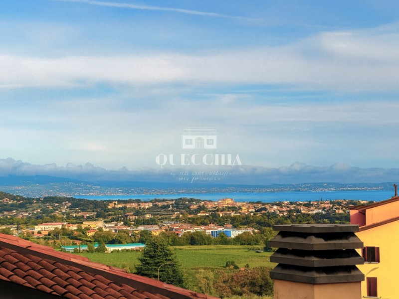 In zona panoramica di Polpenazze, proponiamo in vendita appartamento su due livelli con splendida vista lago e garage.
