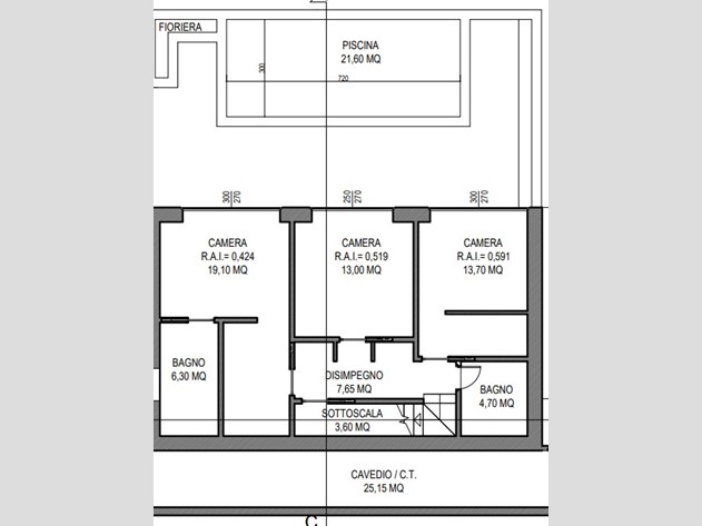 Il piano inferiore ospita la zona notte, composta da una spaziosa camera padronale con bagno en suite, altre due camere, un secondo bagno e locale tecnico sito in un funzionale cavedio, ideale anche come ripostiglio.