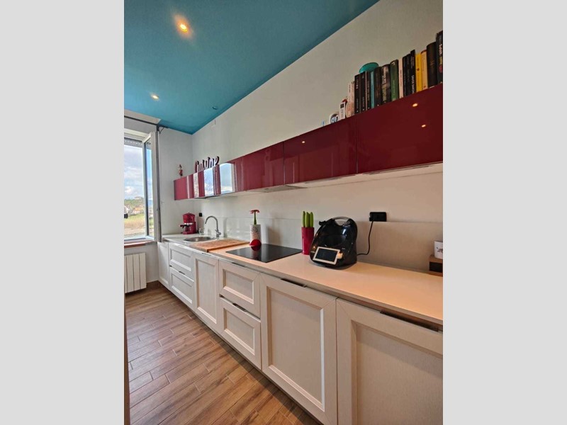 STUDIO AREA AULLA per info e contatti +39 3290733879 propone in vendita Esclusiva ad Aulla grazioso appartamento in ottime condizioni, di 5 vani al piano primo di palazzina in ordine appena ristrutturata con cappotto termico in facciata, giardino condominiale, l'appartamento è composto da ingresso in soggiorno, angolo cottura, corridoio, due camere di cui una con cabina armadio, bagno con doccia. Infissi nuovi con doppi vetri e tapparelle elettriche, riscaldamento autonomo con caldaia a condensazione, classe energetica A2, portone blindato. Al piano seminterrato cantina, parcheggio comodo sotto casa in area privata comune. Modiche spese condominiali. L'appartamento si vende arredato della cucina. offers for sale Exclusive in Aulla nice apartment in excellent condition, with 5 rooms on the first floor of a building in order just renovated with thermal coat on the facade, communal garden, the apartment consists of entrance into the living room, kitchenette, corridor, two bedrooms, one with walk-in closet, bathroom with shower. New windows with double glazing and electric shutters, independent heating with condensing boiler, energy class A2, armored door. In the basement cellar, convenient parking under the house in a private common area. Modest condominium fees. The Kitchen is included in the price.