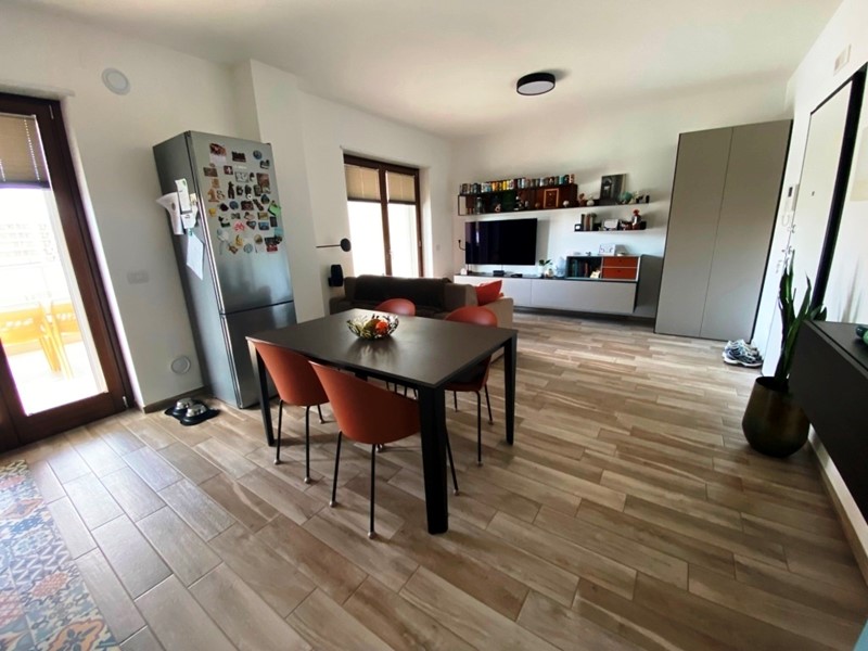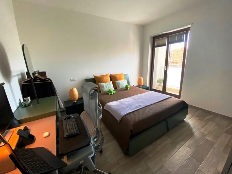 Entrando, si viene accolti da un luminoso salone con angolo cottura, affacciato su un ampio terrazzino a livello, dove poter trascorrere piacevoli momenti all'aperto. Il disimpegno conduce a un comodo vano letto con balcone e a un bagno moderno. Tra le dotazioni, spiccano il videocitofono e il riscaldamento radiante a pavimento, con predisposizione per l'impianto di condizionamento.