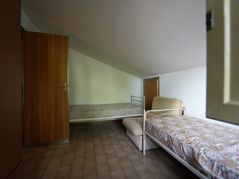 L’appartamento presenta una metratura di 87 mq circa così sviluppati: ingresso su zona giorno con angolo cucina, un’ampia camera da letto e altre due camerette mansardate, di cui una con accesso dalla camera