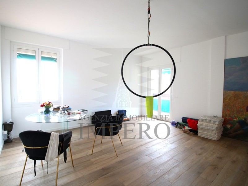 L’appartamento si compone di ingresso in corridoio, ampio salone con cucina a vista, due camere da letto, doppi servizi e un balcone con vista aperta sul fiume e sul mare. Completano la proprietà una cantina pertinenziale e un efficiente sistema di riscaldamento autonomo con pompa di calore.