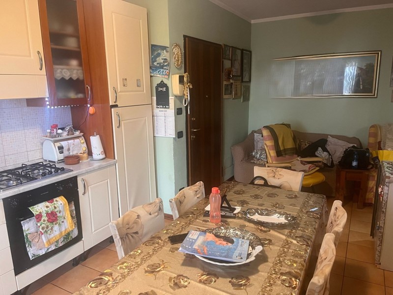 Luminoso soggiorno con angolo cottura, ideale per momenti di relax e convivialità.
