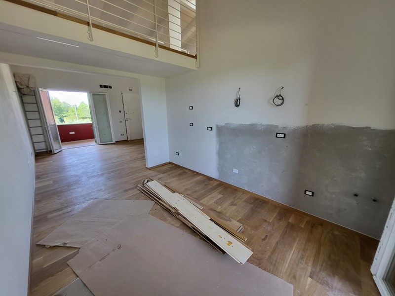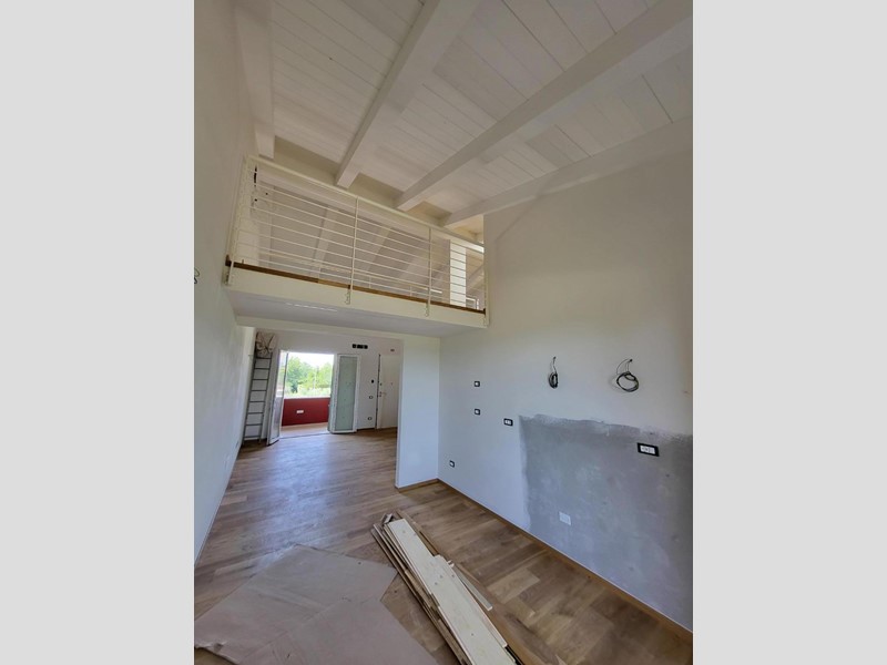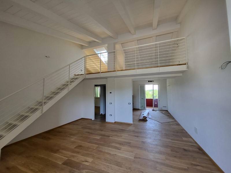 Fornacette - Nuovo intervento edilizio denominato "Casa Piaggio" posto in zona tranquilla e verde a poca distanza dal centro del paese. Appartamento indipendente di 90 mq., 31 mq. di soppalco/mansarda, 23 mq. di terrazze a loggia e con 100 mq. di giardino posto al piano primo, composto da ingresso in soggiorno di 25 mq. con terrazza a loggia, cucina abitabile di 13 mq. con terrazza a loggia, disimpegno notte, 2 camere, 2 bagni e vano per armadio a muro. L'immobile è corredato da un ripostiglio esterno e da una casetta in legno con pergolato ad uso posto auto coperto, da un ulteriore posto auto scoperto e da 100 mq. di giardino esclusivo. Rifiniture eccellenti, impianti di ultimissima generazione, non allacciato al gas, fotovoltaico 2,14 Kwh. Consegna estate 2025. Possibilità di personalizzare, pavimenti, rivestimenti e imbancature. Classe energetica: A3 - Richiesta 290.000 trattabile. (Rif. 1464)
