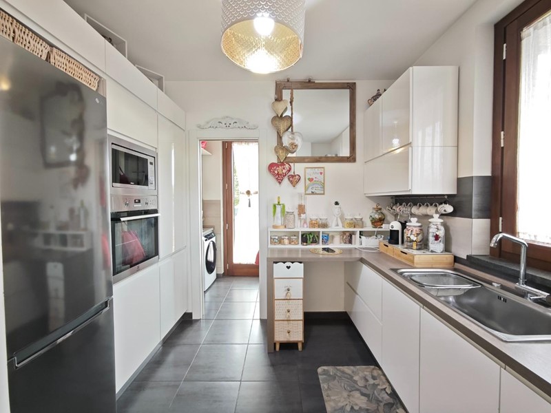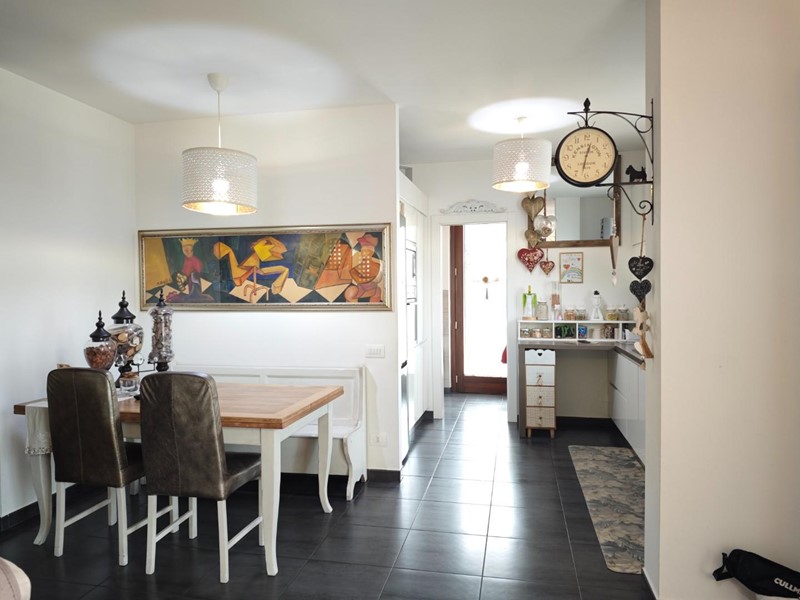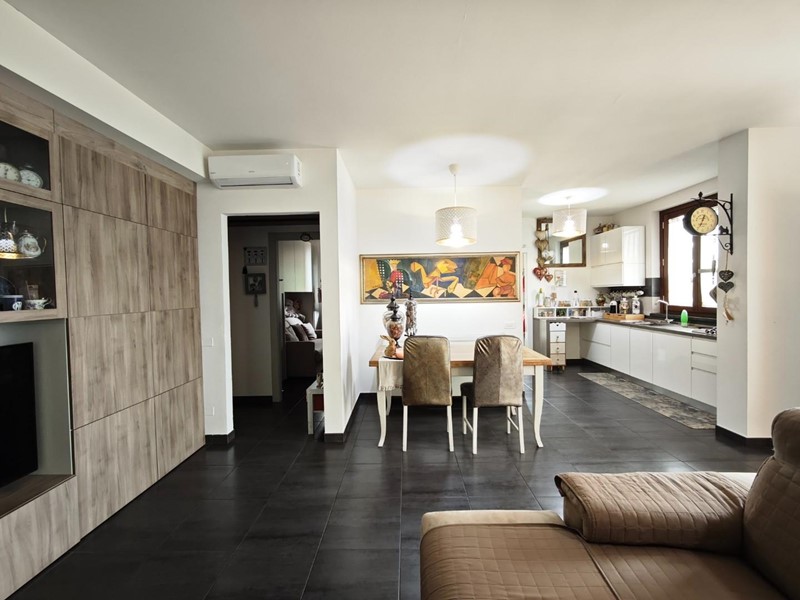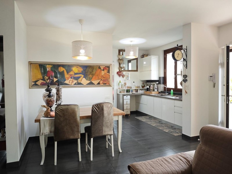 L'immobile è disposto su un unico piano dove una grande sala accogliente e luminosa ci introduce in questo appartamento. La cucina è abitabile e crea con la sala una spaziosa living room aperta e in sinergia con l'esterno grazie alla porta finestra doppia che troviamo sia in sala che nella cucina.