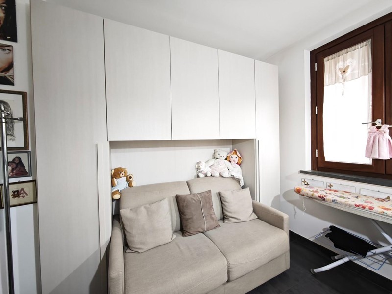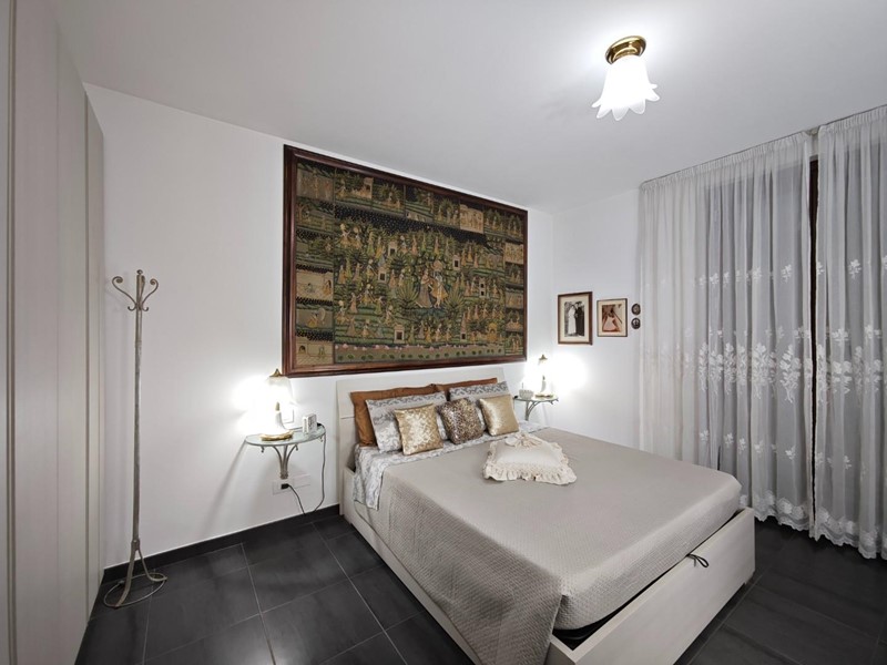 La zona notte ha due camere, una matrimoniale e una singola. Nella camera matrimoniale troviamo la terza porta finestra.