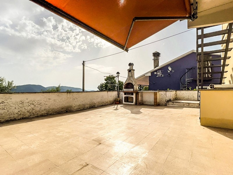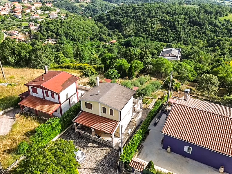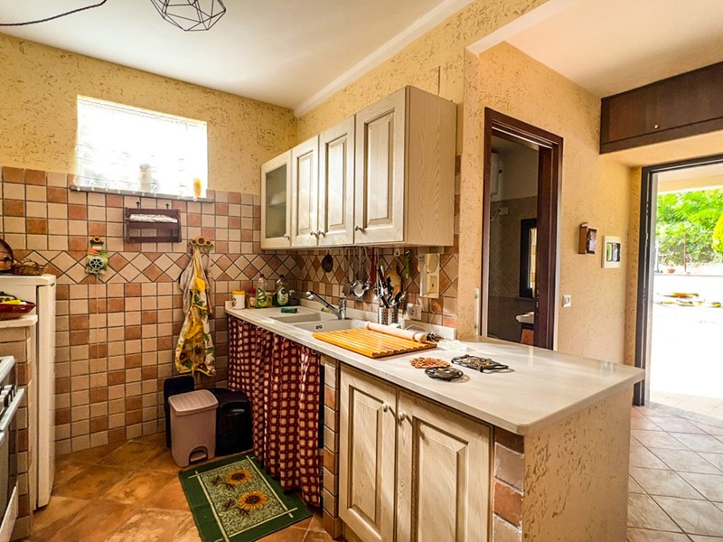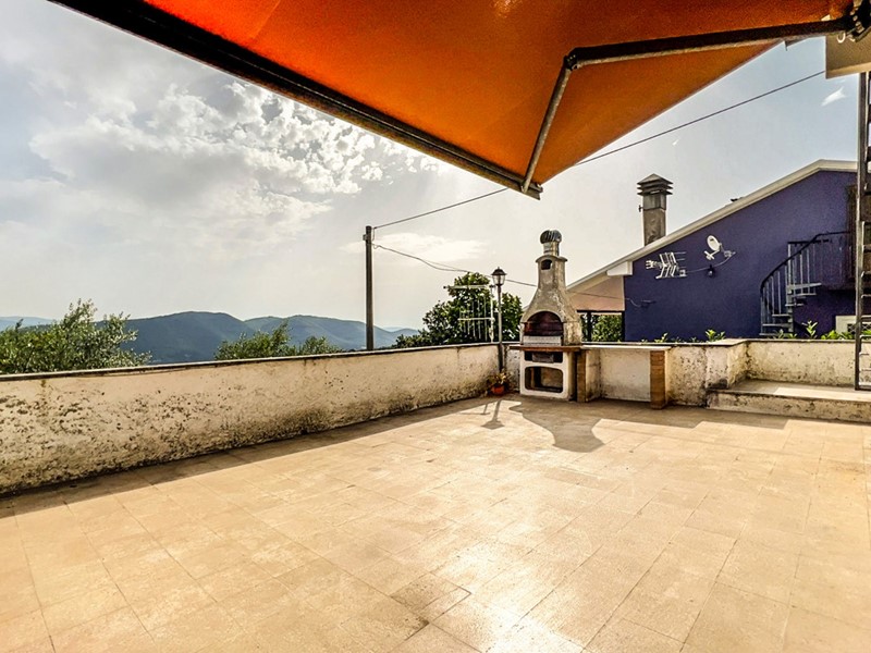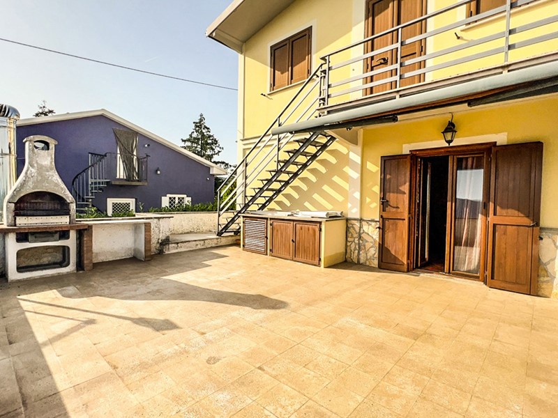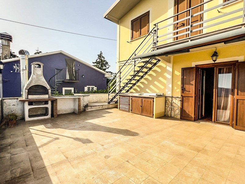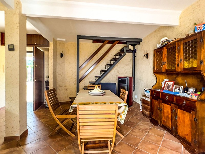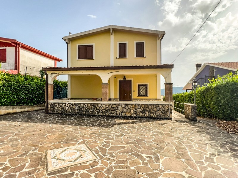 La villa è disposta in triplice elevazione ove al piano terra troviamo un soggiorno con caminetto, angolo cottura e bagno. La zona giorno ha uscita su un ampio e panoramico terrazzo con braciere e raggiungibile anche dall'ingresso della villa tramite marciapiedi laterali al fabbricato.