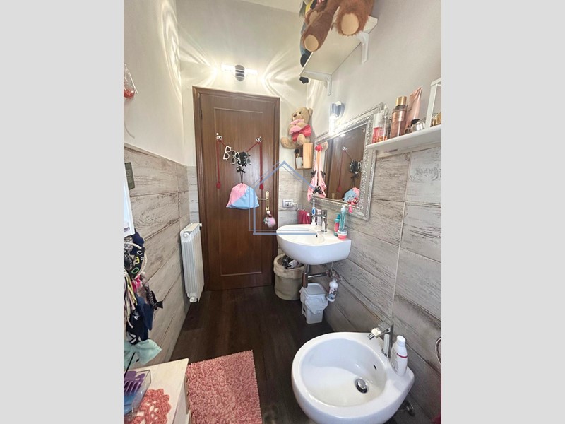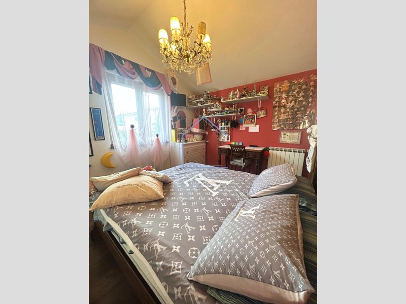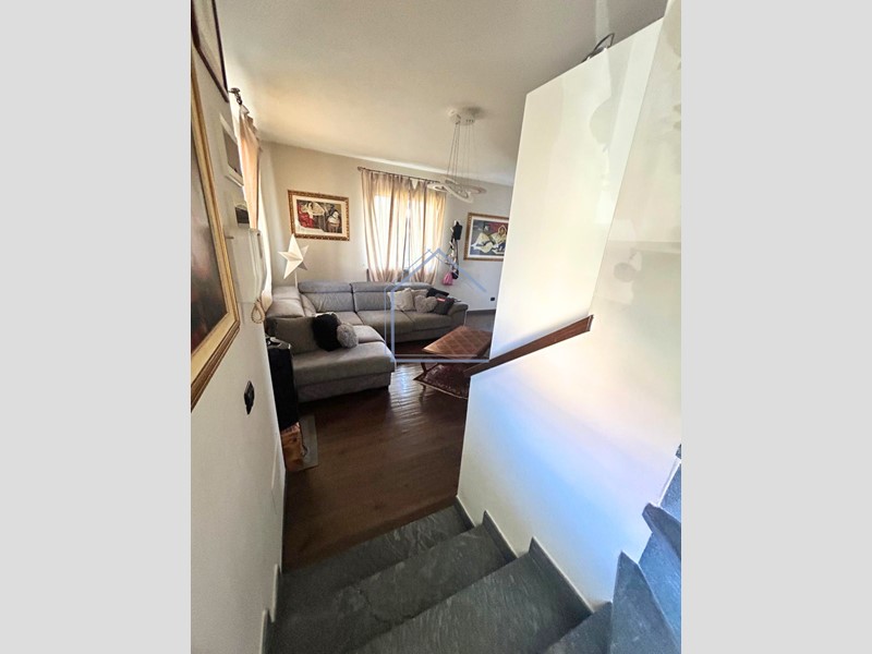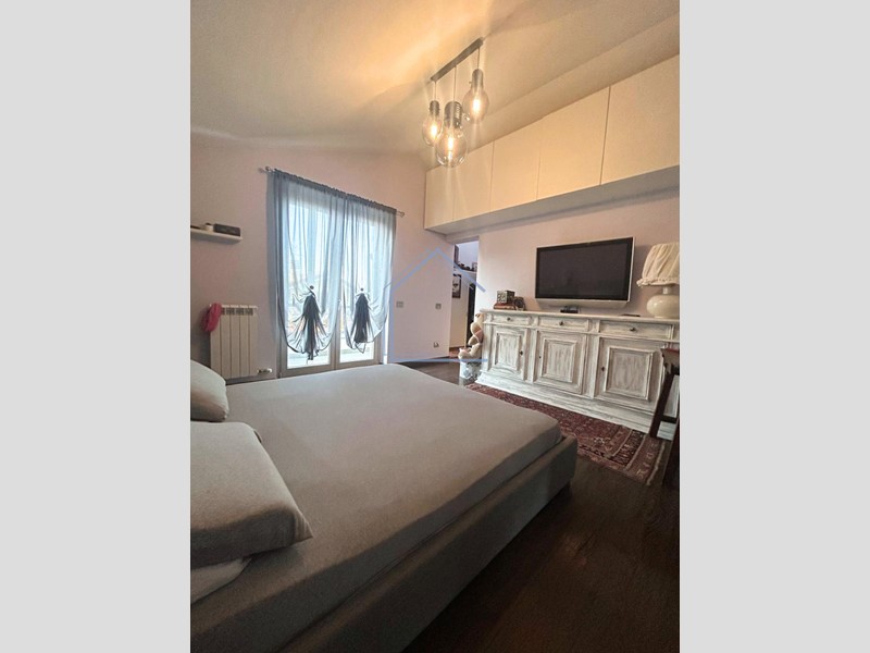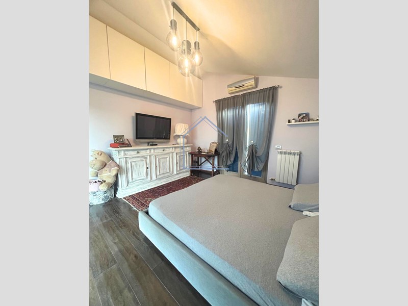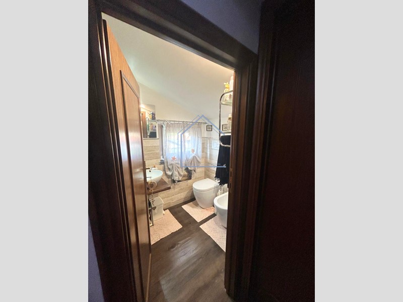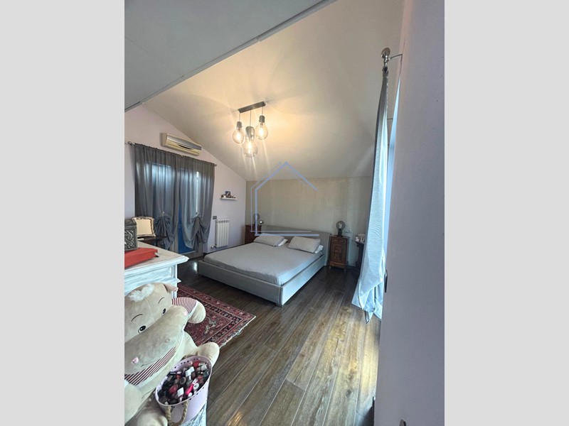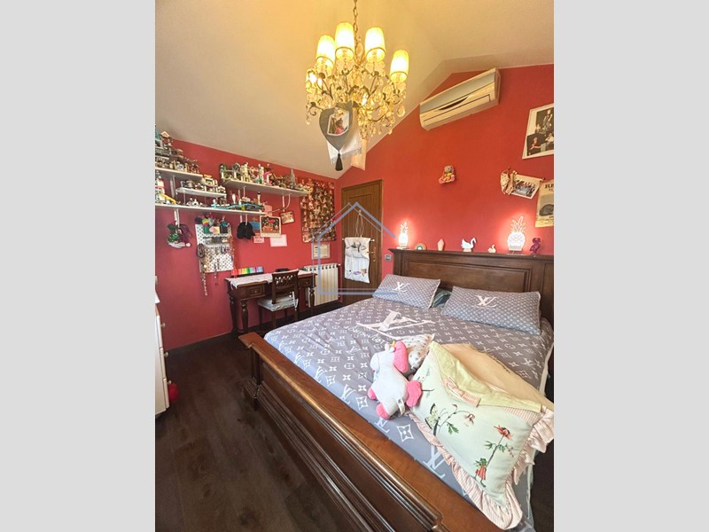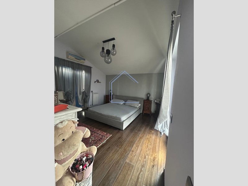 Primo Piano (Zona Notte): La scala interna conduce alla zona notte, composta da due camere matrimoniali, ognuna con il proprio bagno privato finestrato, e una pratica stanza armadi ampia e finestrata. Due comodi terrazzi arricchiscono il piano, uno dei quali ospita il vano caldaia e la lavanderia.