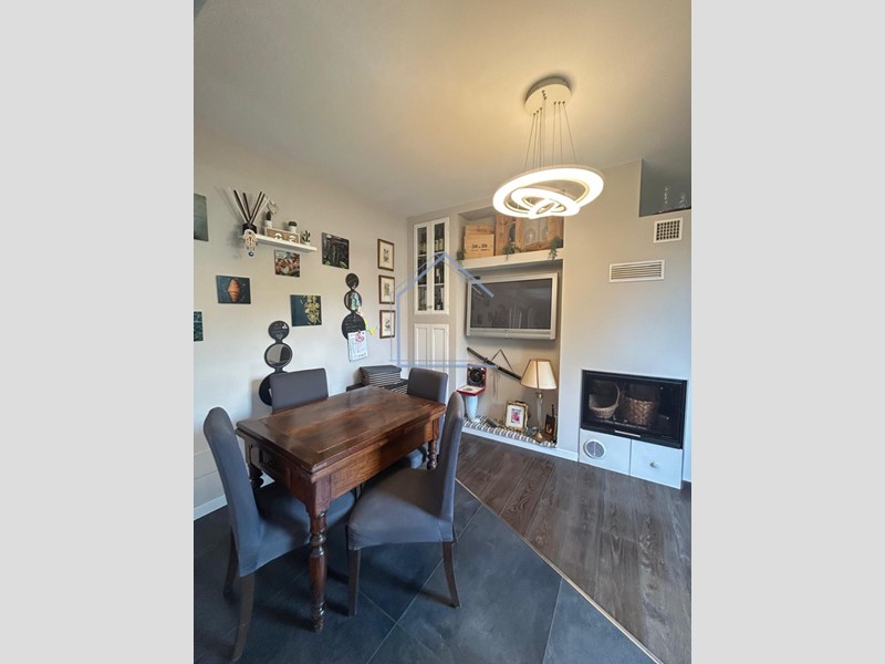 Piano Terra: L'ingresso si apre su una cucina abitabile con isola e una sala da pranzo luminosa con camino a legna. Completano il piano una sala TV e relax aggiuntiva e un bagno finestrato con doccia.