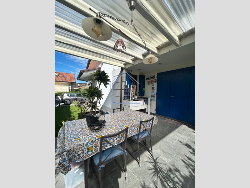 Ampia veranda coperta comunicante con la cucina, perfetta per cene all'aperto.