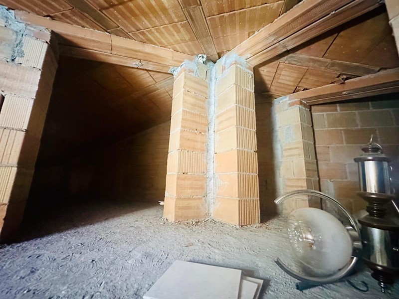 Nel disimpegno zona notte vi è il ripostiglio (dove vi è l'attacco della lavatrice) e una botola con la scala retrattile per accedere alla soffitta uso ripostiglio.