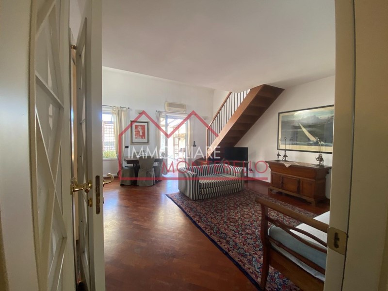 al piano primo da soggiorno-pranzo con angolo ampio cottura, due camere matrimoniali di cui una con balcone, e ampio bagno con vasca idromassaggio e doccia; grande soppalco che si affaccia sul soggiorno adibito a momenti di relax; l'appartamento è arricchito da un ampia terrazza vivibile di 35 mq.