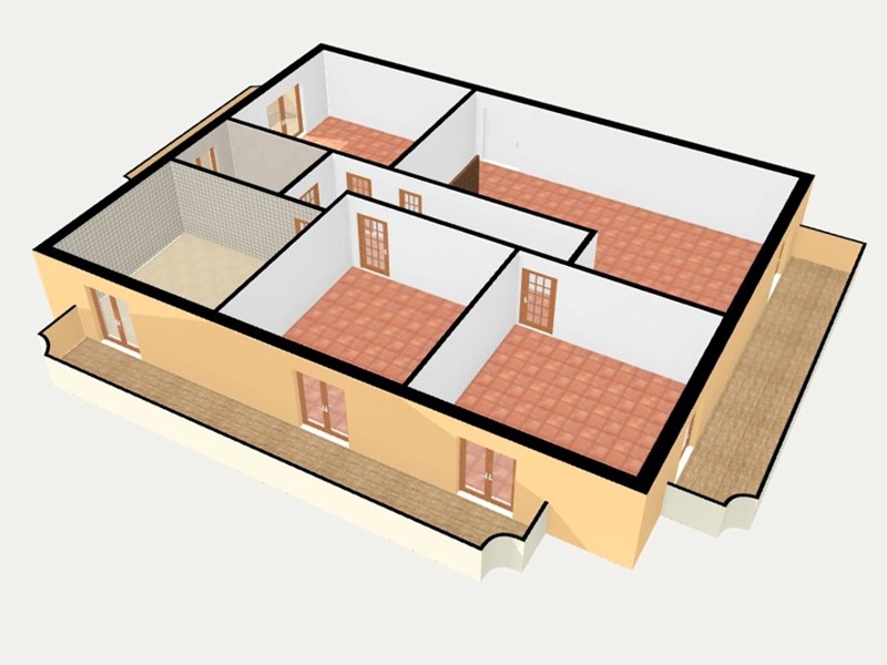 L' immobile ha superficie di 120 mq ed è composto da : ampio ingresso-salone, cucina abitabile, camera da letto, doppia cameretta ed acc.ri.