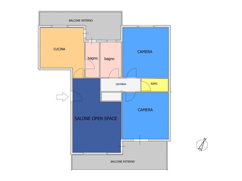 3) ampi balconi, ottima luminosità e doppi servizi;