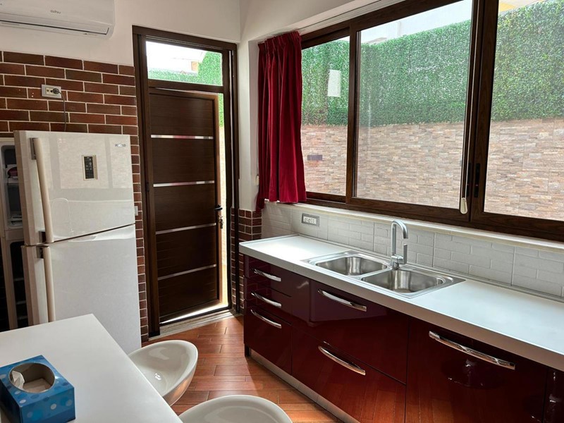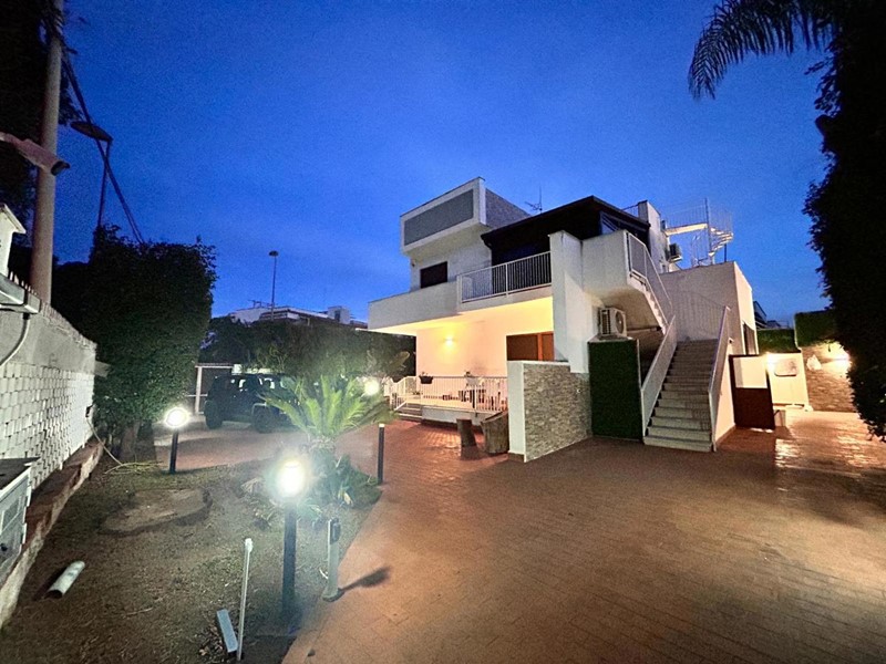 Via Calipso/angolo via Circe (mt. 100 circa dal mare all'altezza dell'hotel Palace) - A Mondello Porzione di villa bifamiliare di mq 160 c.a. oltre terrazze e giardino di mq 400 circa dove troviamo una zona adibita a lavanderia con servizio, possibilità entrare diverse auto. Composta da: piano terra, salone, soggiorno, cucina e servizio con doccia. Da scala sia interna che esterna si accede al primo piano dove troviamo 3 camere da letto, cabina armadi e servizio. Da scala esterna si accede alla terrazza con vista mare. Immobile totalmente ristrutturato ed arredato. Locazione da concordare a referenziati, due mensilità a cauzione.