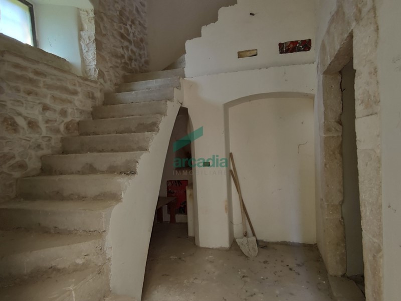 L’ intera proprietà è così composta: al piano terra locali ad uso deposito con volte a botte e travi in legno di circa 110 mq in parte ristrutturati; appartamento al primo piano di due vani e accessori con terrazza anche quest’ultimo parzialmente ristrutturato.
