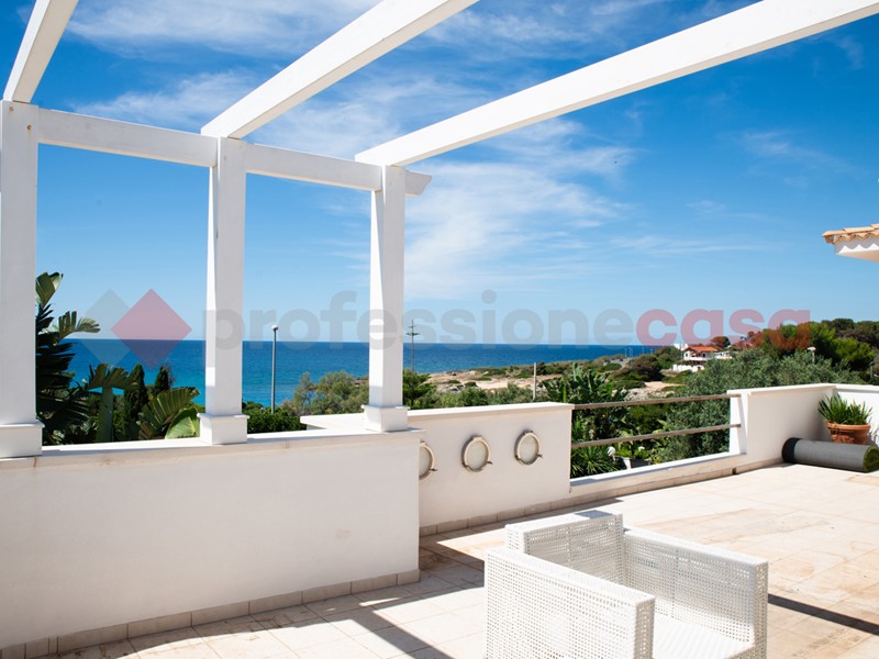 Direttamente affacciata sulla splendida litoranea salentina, proponiamo una proprietà unica nel suo genere. La soluzione si compone da due appartamenti rispettivamente piano terra e piano primo. Il piano terra è abbracciato da un portico in stile coloniale da cui si gode una splendida vista mare. Un primo ingresso conduce alla cucina abitabile rifinita in ogni dettaglio con caratteristiche travi in legno sul soffitto; dalla cucina si accede al primo livello del salone, questo si sviluppa sulla lunghezza del portico e dispone di camino e varie aree relax, impreziosito da una parete in pietra. Completano il piano terra due camere da letto matrimoniali e un comodo bagno. Il primo piano presenta un ingresso indipendente. Una scala in legno massello ci accoglie e con i suoi gradini sospesi arriviamo al piano completamente impreziosito dallo stile marinaro, tra conchiglie, coralli e remi saremo avvolti da una dimensione magica. Anche qui una zona living spaziosa presenta cucina e salone fusi insieme, tre camere da letto di cui una con bagno in camera . Completa lo scenario una terrazza con vista mozzafiato. L'immobile ha subito recente riqualificazione con interventi legati all'efficientamento energetico, ogni dettaglio è ripreso con cura e ricercatezza. La proprietà è resa altresì singolare dal grande giardino circostante, una distesa di piante ornamentali miste tra mediterranee e tropicali, con aree pavimentate per godere appieno della vita all'aperto. La soluzione si presenta come una vera rarità sulle nostre coste.
