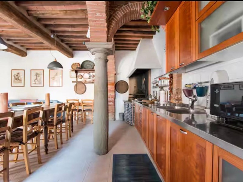 PRIMA DEL'INGRESSO DELL'IMMOBILE TROVIAMO AMPIA ZONA LAVANDERIA, SUBITO DOPO ENTRIAMO ALL'INTER DOVE TROVIAMO UNA GRANDE CUCINA CON CAMINO CON SOFFITTO IN TRAVI E MATTONI TOSCANI TIPICO CASALE STORICO TOSCANO,ED UN. SERVIZIO, AL 1 PIANO TROVIAMO DUE CAMERE CON BAGNO CLIMATIZZATE, AL PIANO SECONDO GRANDE CAMERA CLIMATIZZATA CON BAGNO, AL TERZO PIANO CAMERA CLIMATIZZATA E BAGNO. L'IMMOBILE E DI IMPORTANZA STORICA.-