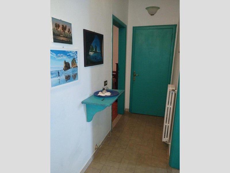 In posizione centrale vendesi (in terratetto su tre piani) appartamento al secondo piano composto da: scale di accesso esclusive, ingresso, cucina-soggiorno, 2 camere, bagno, ripostiglio, terrazzo e soffitta. Al piano mezzanino un locale pluriuso. Arredamento compreso.