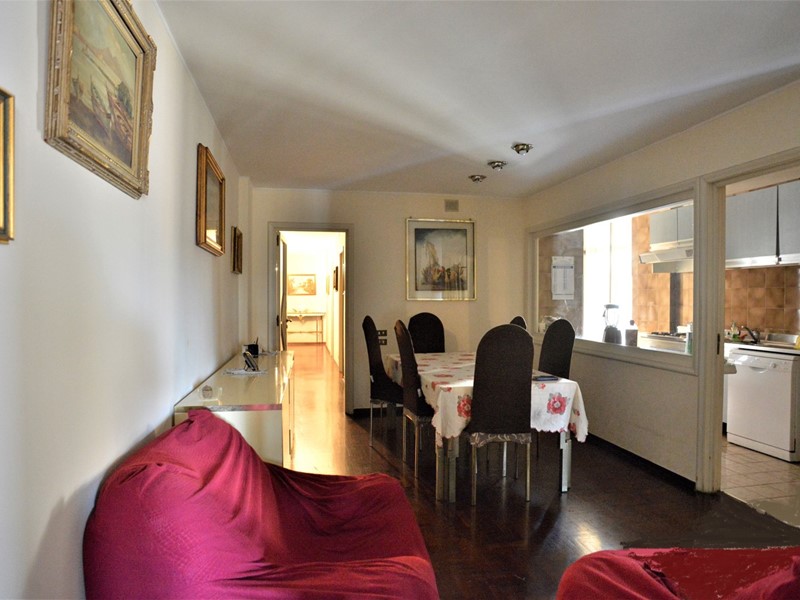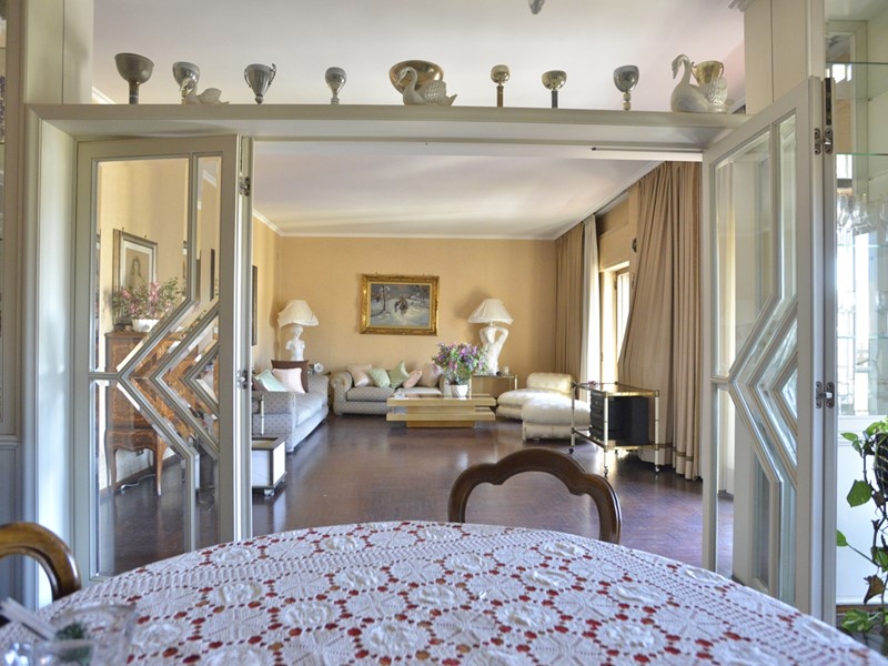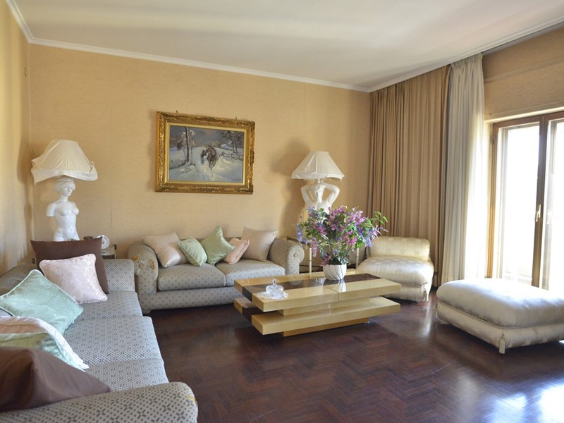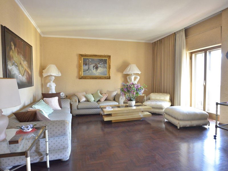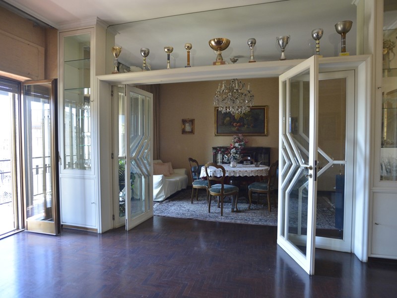 Un appartamento signorile, ampio (mq. 145 ca.), dal taglio elegante, in uno stabile degli anni '60 ben abitato. E' posto a piano alto, ed è molto luminoso ed arioso. Affacciandosi dal bel balcone esterno, la vista spazia dai giardini di Piazza Garibaldi, alla Chiesa di San Francesco, e sovrasta i tetti degli stabili circostanti. Lo spazio è ben diviso tra zona giorno e zona notte. Entrando l'ingresso, comodo, ci conduce nel salone triplo, diviso, grazie ad una bella porta a vetri, in un grande salotto ed in una sala pranzo di rappresentanza. I tre affacci sul bel balcone esterno garantiscono grande luminosità. La zona giorno è completata dal soggiorno/pranzo, separato, grazie ad un'altra struttura in vetro e legno, dalla cucina a vista. La zona notte ha tre camere da letto, una matrimoniale e due leggermente più piccole, e due grandi bagni, entrambi con finestra.
