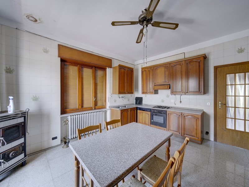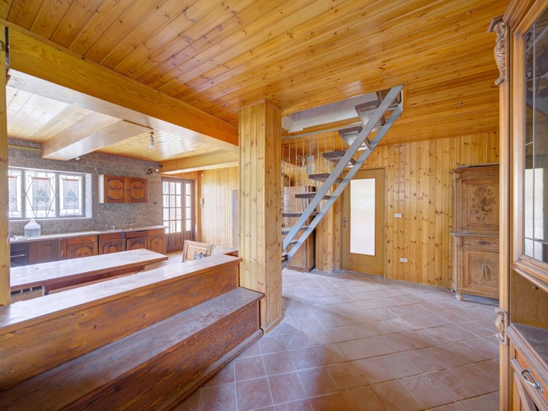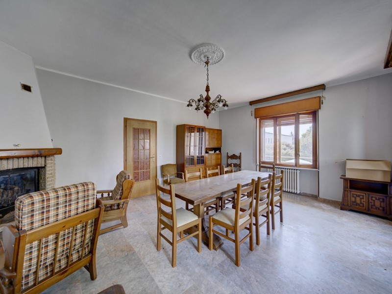 Salendo al primo piano, ci accoglie un ingresso che conduce a una cucina abitabile dotata di stufa, perfetta per preparare piatti deliziosi in un ambiente accogliente. Il soggiorno, arricchito da un camino, diventa il cuore pulsante della casa durante le serate invernali. Questo livello offre inoltre tre camere da letto, ciascuna con ampie finestre che permettono l'ingresso di luce naturale e un bagno completo che serve le camere.