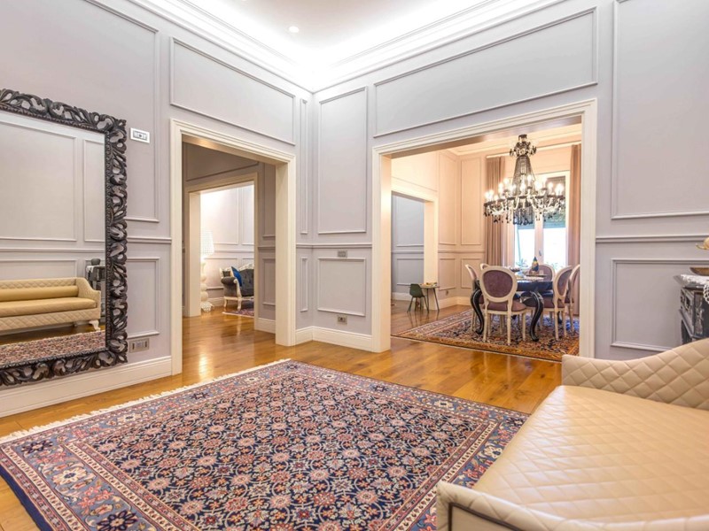 L'appartamento è composto da un salone triplo di 62 mq, suddiviso in sala pranzo e zona relax, con un ampio disimpegno arredato con un grande armadio a muro, dal salone si accede alla cucina arredata su misura, con affaccio interno. La zona notte è composta da tre camere matrimoniali, con armadi a muro, di cui una di 26 mq con bellissima cabina armadio e ampio bagno privato, disimpegno notte, secondo bagno finestrato e ripostiglio.