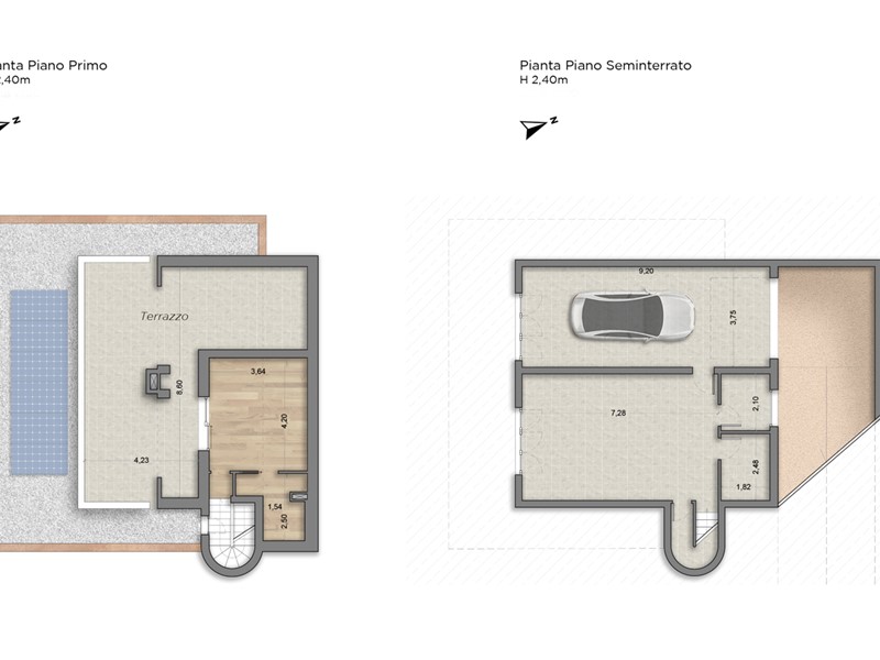 -Piano Seminterrato: Sala hobby, bagno finestrato, locale tecnico e garage doppio con colonnina di ricarica.